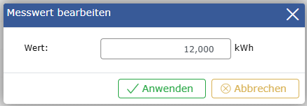 Navigieren Sie im Erfassungsbereich zu dem Zählpunkt und dort zur entsprechenden Messgröße. Wählen Sie die Option - Bearbeiten.