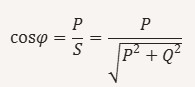 Berechnet für einen angegebenen Zählpunkt für jede Periode den cos(φ) über die Formel